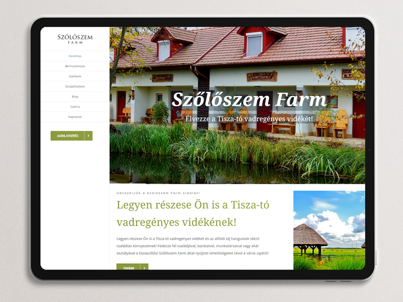 A Szőlőszem Farm weboldalán kiemelt szerepet kapott az ajánlatkérő űrlap kialakítása, valamint a szolgáltatások strukturált és átlátható bemutatása.